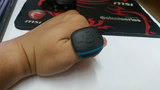 | แหวนบลูทูธขนาดค่อนข้างใหญ่ แต่มีน้ำหนักเบาสามารถปรับขนาดวงแหวนได้ |