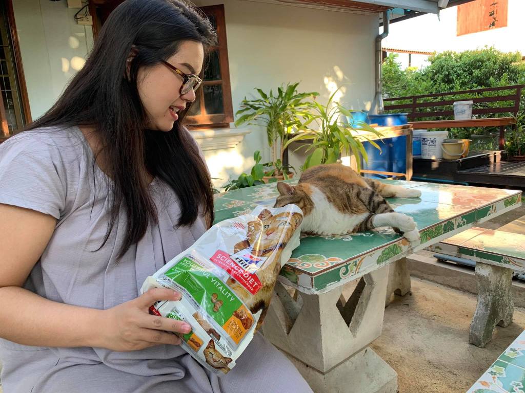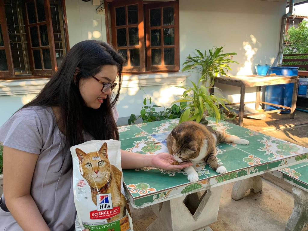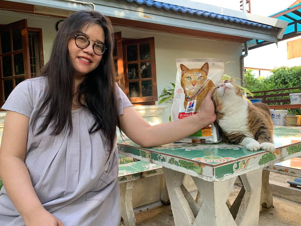 ผมถามเธอถึงอาหารแมว Hill’s สูตร Youthful Vitality ที่ทางแบรนด์ส่งมาให้รีวิวว่าเป็นอย่างไรบ้างหลังจากได้ลองใช้