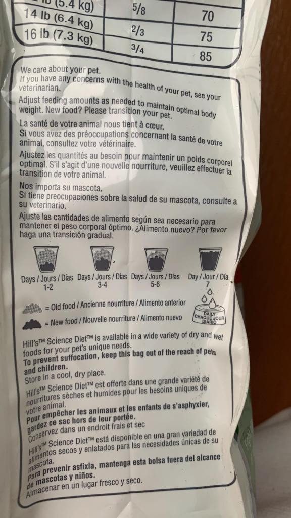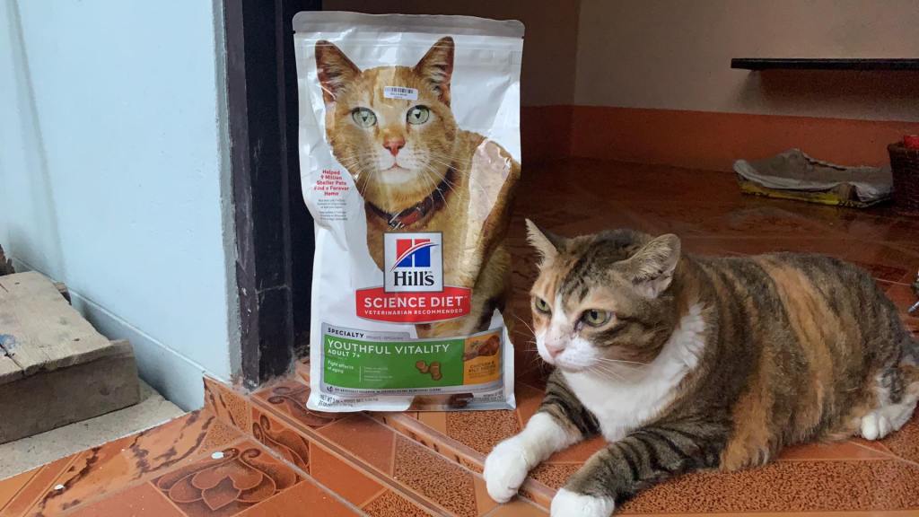 ปริมาณการให้อาหารแมวก็สำคัญ ถึงแม้ว่าอาหารแมวแก่จะมีพลังงานต่ำ แต่ถ้าให้เยอะเกินไปเกินกว่าที่กำหนดต่อวัน แมวก็จะอ้วนเพราะได้รับพลังงานเยอะเกินไป ซึ่งถุงอาหาร Hill’s จะบอกอยู่ข้างถุงว่าน้ำหนักเท่าไหร่ ควรให้อาหารที่เท่าใด