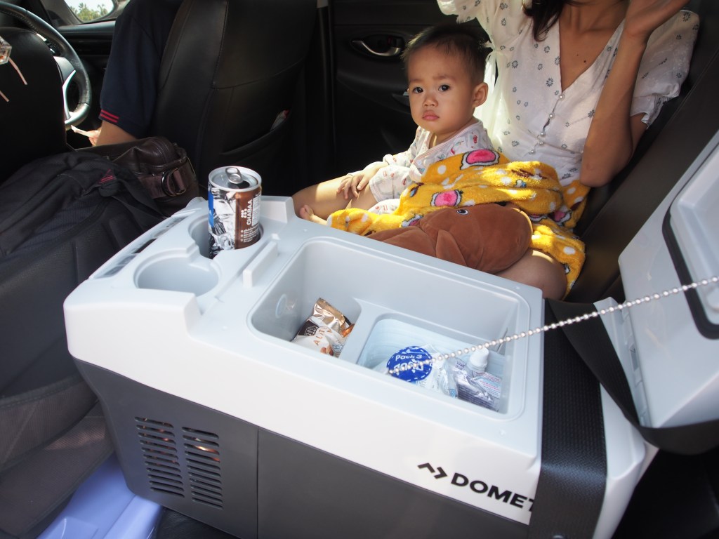 ผมเลยตัดปัญหาด้วยการลองใช้ ตู้เย็นแช่แข็งแบบพกพา Dometic CF11 ซึ่งเป็นตู้เย็นเล็กเคลื่อนที่ เอาไว้แช่ของกินระหว่างการเดินทาง และเผื่อไปถึงการแช่นมแม่ให้ลูกกินในอนาคต