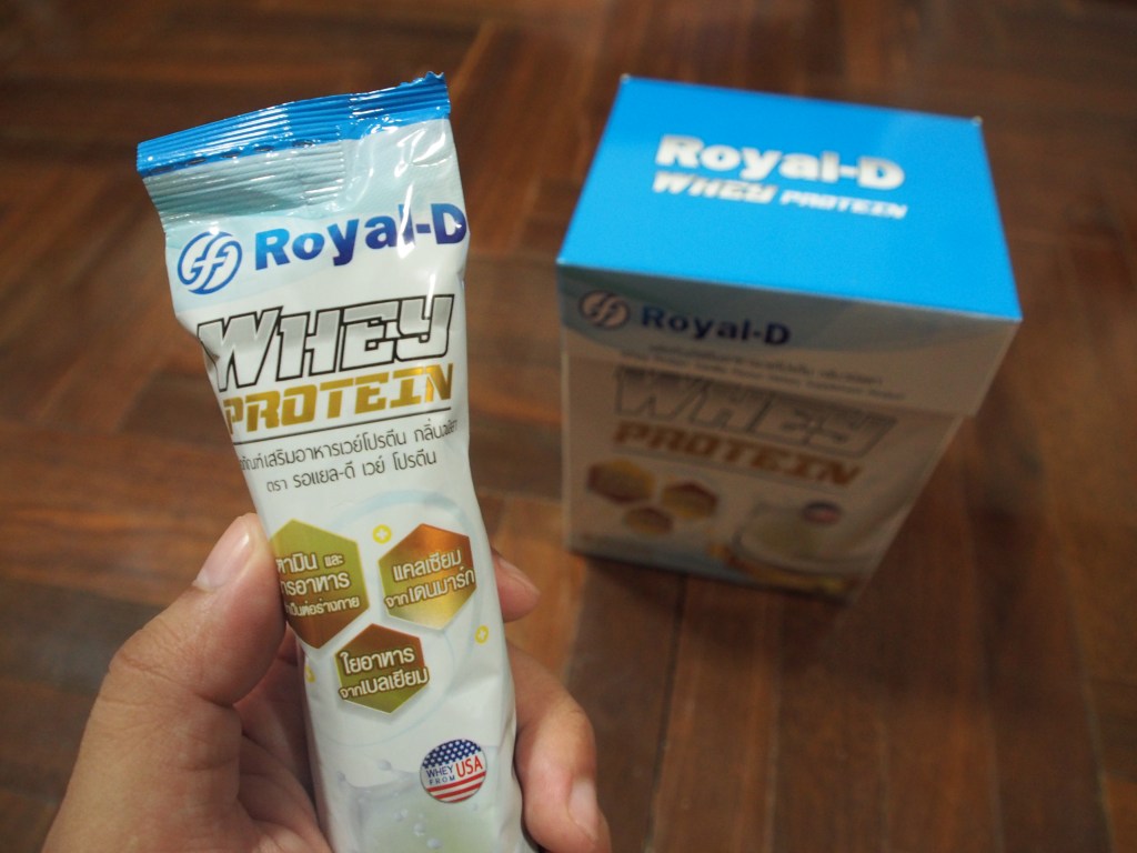 ช่วงนี้ผมกินเวย์โปรตีนของแบรนด์รอแยลดี (Royal D) อย่างที่รู้ ๆ เวย์โปรตีน คือ โปรตีนที่ผ่านการสกัดมาแล้ว ร่างกายสามารถดูดซึมได้ไวกว่าโปรตีนจากเนื้อสัตว์ในมื้ออาหาร สามารถดูดซึมแล้วนำไปใช้ได้ในทันที