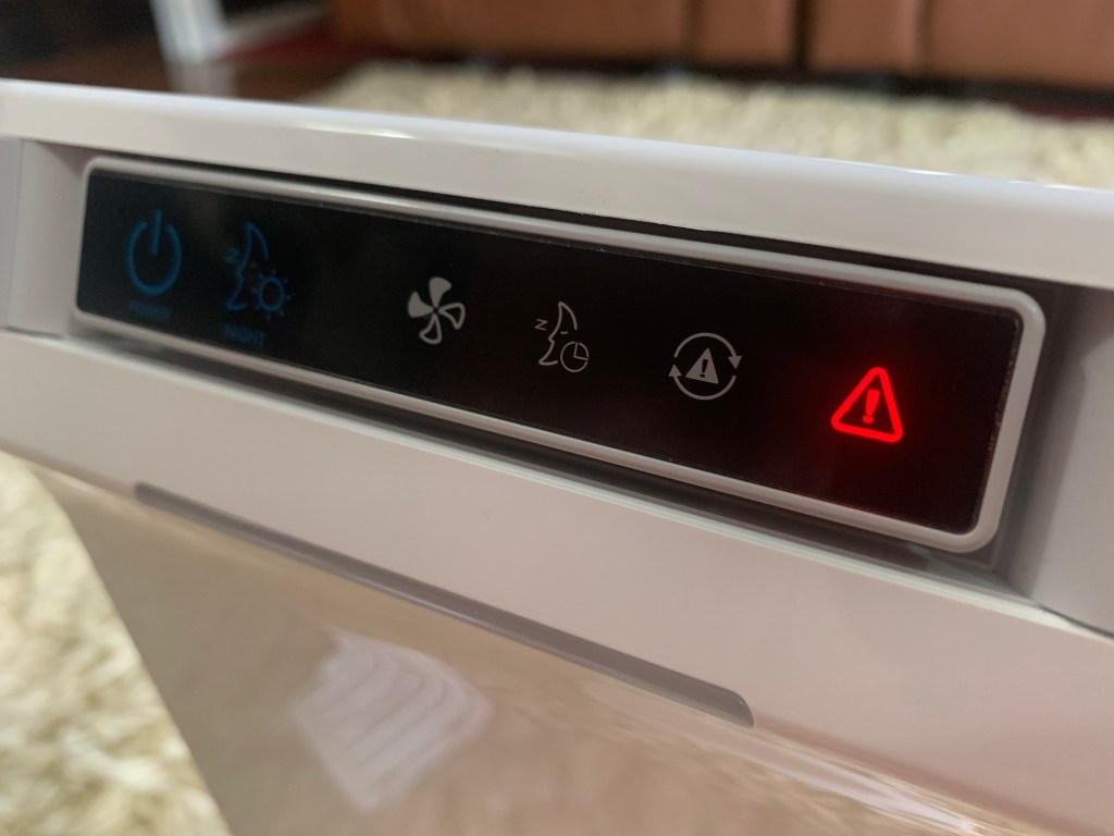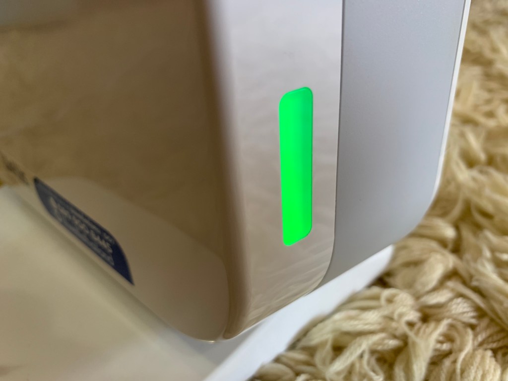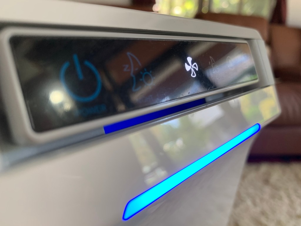 บริเวณด้านหน้าตัวเครื่องจะแสดงแถบสีคุณภาพอากาศ ซึ่งวัดค่าสารประกอบอินทรีย์ระเหยง่าย (TVOC) ในขณะนั้น