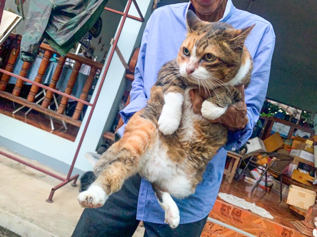 แมวอายุเยอะขนาดนี้แน่นอนว่าสิ่งสำคัญที่สุดคือการควบคุมอาหาร เพราะด้วยอายุจะเดินก็แทบจะไม่ไหวแล้ว ไม่ต้องพูดถึงการกระโดด แค่ม้านั่งเตี้ย ๆ ยังเล็งแล้วเล็งอีก