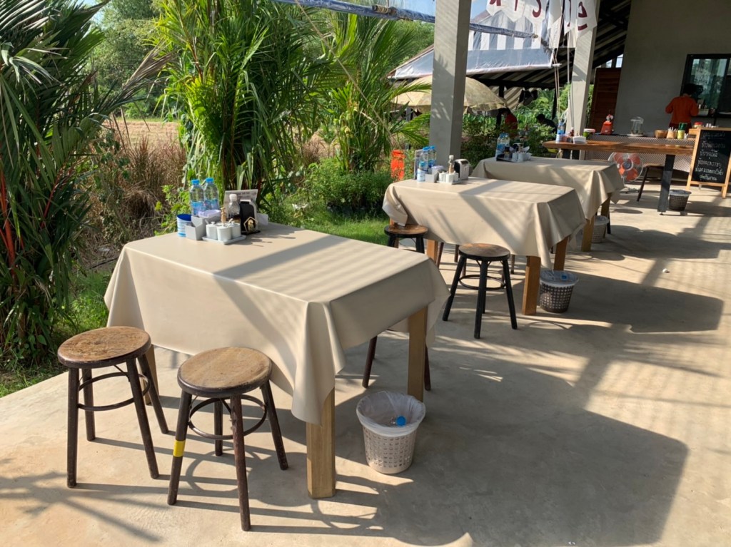 ตัวร้านอาหารจะเป็นแบบเปิดโล่ง ใช้ลมจากธรรมชาติ ทีแรกก็นึกว่าจะร้อน เพราะผมพาลูกไปเที่ยวด้วย แต่ปรากฎว่า อาจจะเป็นเพราะ ร้านติดทุ่งโล่ง ทำให้ลมเย็นสบายพัดเข้ามาแทบจะตลอดเวลา
